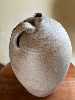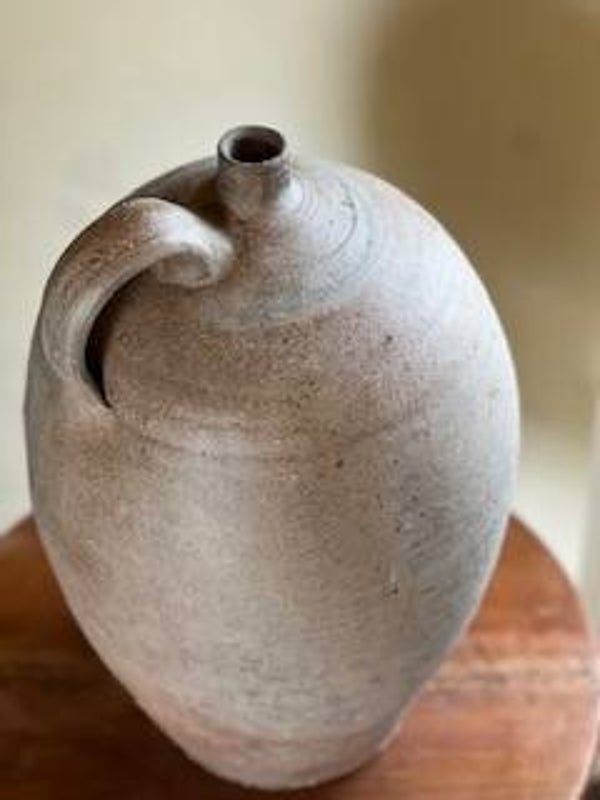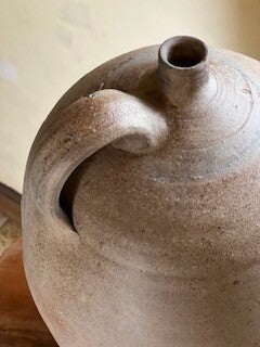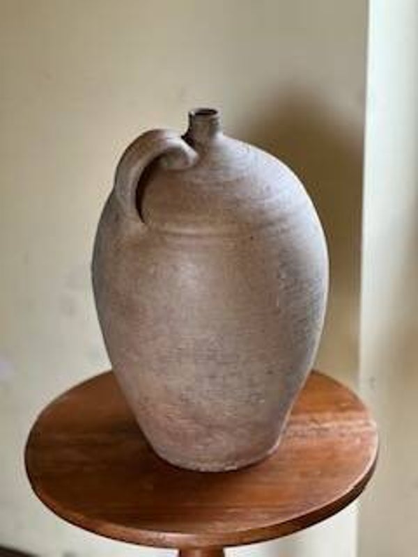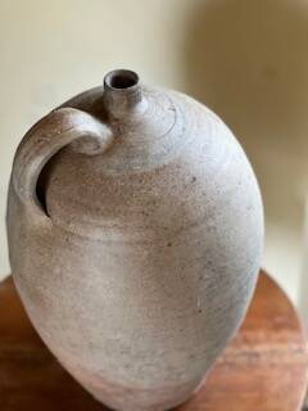 Originaire de la région de Normandie, cette grande cruche, réalisée en terre cuite, porte fièrement les traces de son histoire et de sa fabrication artisanale. Traditionnellement utilisée pour le stockage du calvados, elle est aujourd’hui plébiscitée pour sa valeur décorative.