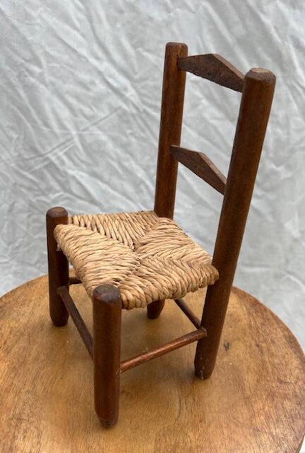 Cette chaise miniature, originellement jouet pour maison de poupées, est plein de charme lorsqu'elle est détournée en simple objet de décoration, comme porte plante ou bougie.